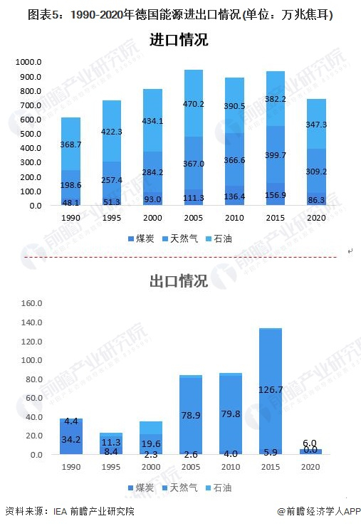 德国能源贸易逆差较大,煤炭对外依存度高