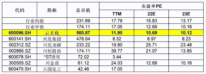 目前在市场较高景气度的情况下,磷肥及磷化工市场平均PE(TTM)在18倍上下,而云天化作为行业龙头理应享受较高的市场预期,市盈率显然略处于低估,但目前市场从整体来看,对磷肥及化工的业务估值不会高于20倍。