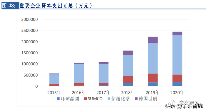 全球硅片龙头企业通过并购的方式实现外延式扩张是发展壮大的有效路径。由于半导体 硅片厂商扩产面临巨大的资本开支,规模优势尤为重要,厂商只有通过大规模生产,才 能降低固定成本,提升盈利能力;其次,通过兼并收购,厂商可以提高市场集中度,提 升产业链的议价能力,以维持相对稳定的盈利能力。