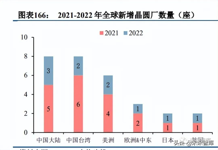 产能利用率满载运行,预计新增 12 英寸晶圆产能开出将大幅缓解行业供需紧张。截止到 2022 年第一季度, 全球头部的晶圆代工厂产能利用率仍然处于 100%以上,从 2021 年初开始行业缺芯加剧,以台积电、联电、中 芯国际和华虹半导体为代表的晶圆代工厂商季度产能利用率连续 5 个季度达到 100%以上,反映了行业缺芯的 严峻。根据我们统计,今年全球范围内有 10 座 12 英寸晶圆厂投产,其中有 4 座 Foudnry 厂,2 座存储芯片厂, 剩余 4 座模拟与功率芯片厂。随着这些产能在今年下半年逐季释放,行业供需紧张的格局有望大幅缓解。