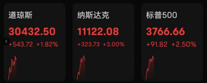 21日晚间,美股三大指数全线上涨,新能源汽车板块涨势强劲,特斯拉一度大涨逾11%,Rivian涨超11%,蔚来涨超9%,小鹏汽车涨7.99%。ETF悉数上涨,能源业ETF、金融业ETF、半导体ETF等涨超2%。截至22:30,道琼斯指数上涨近2%;纳指上涨3%,标普500指数涨2.5%。