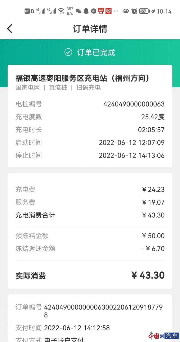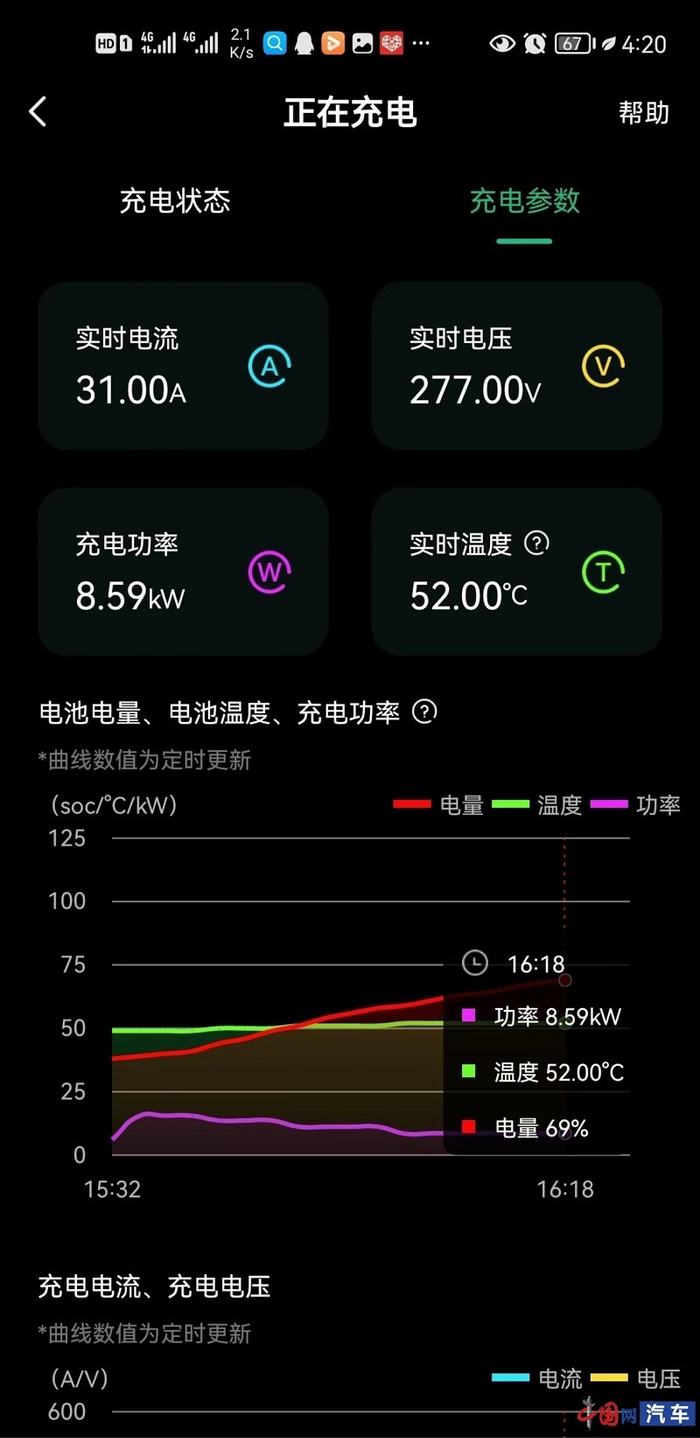 车主王女士向记者强调,自己期间更换了很多个高速服务站,但情况都一样,“在国家电网的快充上充电都很慢,充电电流只有20-30A,充电功率5-9KW之间,但是直流快充充电电流基本都是150-400A,功率至少是30KW!”