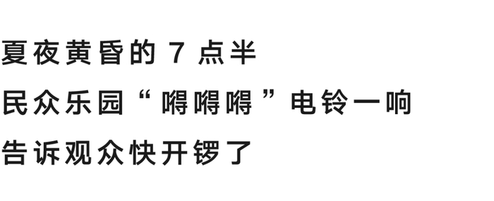 夏夜黄昏的7点半,民众乐园“嘚嘚嘚”电铃一响,告诉观众开锣了。