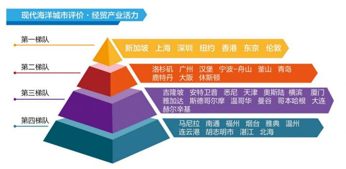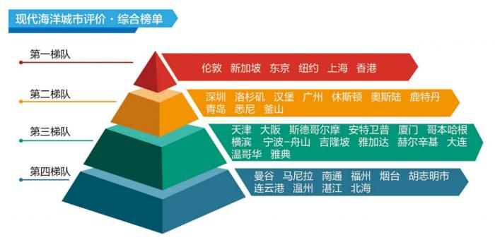 根据测评结果,伦敦、新加坡、东京、纽约、上海、香港位列全球现代海洋城市第一发展梯队,这六座城市海洋经济基础雄厚、海洋产业营商环境优越、海洋科技创新引领全球、现代化治理能力强劲;深圳、洛杉矶、汉堡、广州、休斯顿、奥斯陆、鹿特丹、青岛、悉尼、釜山则进入第二梯队,它们分别是亚太、北美、欧洲海洋经济圈内重要的现代海洋城市标杆。