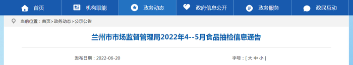 中国质量新闻网讯 6月20日,兰州市市场监督管理局网站发布2022年4—5月食品抽检信息通告,涉及45批次糕点抽检合格信息。