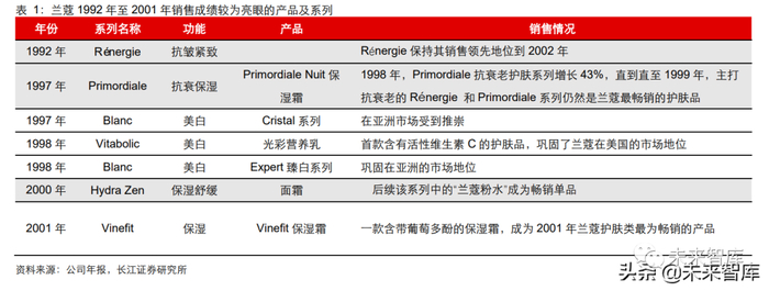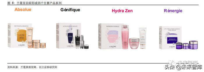 复盘兰蔻的产品变迁历程,我们可以得到如下三点启示,第一是畅销及长销单品,需要 具备的特征是产品的功能较为综合;第二是高端品牌大单品的生命周期通常较长,目前 兰蔻全球畅销的四个产品系列 Rénergie、Hyra Zen、Absolue 和 Génifique 及系列内 的畅销单品,均已拥有 10 年以上的产品发展历史,且至今依旧畅销;第三是高端品牌 的产品系列历史较长且系列数量偏精简,从而使得品牌系列具备较长沉淀周期、品牌形 象更易于被消费者铭记。