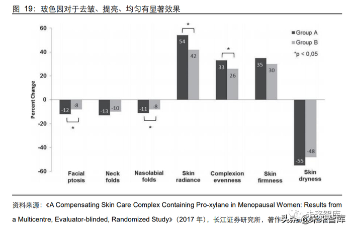 在此基础上欧莱雅进行多次临床实验证明玻色因作为抗衰成分的有效性,例如 2008 年 发布研究说明玻色因的合成是具备绿色化学成分标准的,又或是 2016 年薇姿实验室对 240 位女性的临床实验证明玻色因对去皱、提亮、均匀有明显效果,并且证明了玻色因 在超过 3%以上的浓度会产生显著的效果。