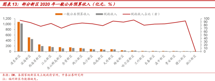 12个管委会型新区都不具有独立的财政体制,但多数新区都设立金库,自主核算本级财政收支,和市级财政一并报市级人大审议。部分新区税收、政府性基金收入由上级政府征收,之后转移支付到新区本级,转移支付规模以及返还时间差可能会冲击新区当期财力。