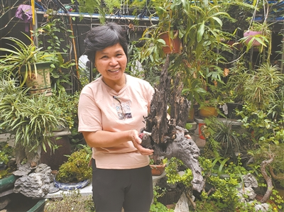 罗惠娟是个闲不住的人,当时周边不少人搬家丢弃花草,她一溜达出门,转手就能提几盆回来。自己也不“挑肥拣瘦”,没有养过的品种多多益善,广州街坊过完年处理掉的年桔也欣然挪入,即便是一块假石、一桩木头、一段枯枝,在她眼中都可以为“桃花源”增色。