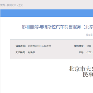 6月21日,北京法院审判信息网披露一则关于特斯拉汽车销售服务(北京)有限公司买卖合同纠纷判决书。