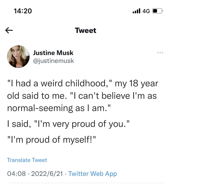 对贾斯汀来说,和马斯克的婚姻并不那么完美。她曾写过一篇文章,“他在南非男性主导的文化中长大,他在商业上如此成功的竞争和统治意愿并没有在他回到家时神奇地停止。我反复告诉他,我是你的妻子,不是你的雇员。”马斯克则回应:“如果你是我的雇员,我会解雇你。”