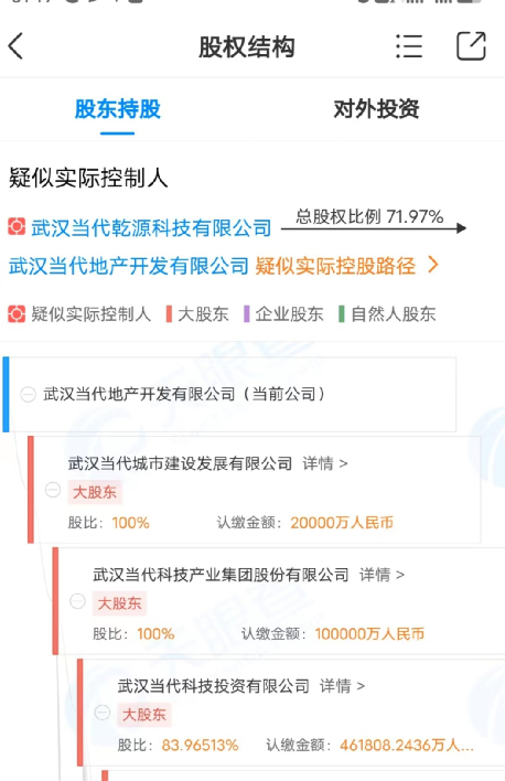 而当代地产穿透后,背后正是当代集团,为当代集团地产板块的的运营主体。公开资料称当代地产采取“独立开发+联合开发+代建”的模式深耕武汉市场,业务覆盖住宅地产、商业地产、产业地产以及小城镇综合体等。当代地产成立于2011年,注册资本2亿元,由武汉当代城市建设发展有限公司(下称“当代城建”)持股100%,继续穿透后当代城建又由当代集团100%持有。