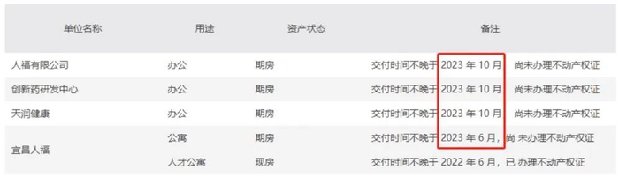 然而公司如此爽快,几乎全额付款,实际上买到的大部分是期房,而且存在交割风险。公告显示,这些房产还处于施工建设阶段,大部分是在2023年6月和10月交房。目前珂美立德资金紧张,存在因建设施工安排未及预期等因素导致不能如期交付的风险。