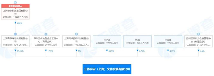 游族网络在2018年年初以1.2亿高价收购了张番番的公司(《三体》影视版权持有人),拿下《三体》的影视版权。拿下版权后,《三体》IP的运营权从游族影业过渡到了三体宇宙。天眼查信息显示,三体宇宙(上海)文化发展有限公司的实控人是上海游族科技集团,股东还包括游族网络已故控股股东林奇的子女。