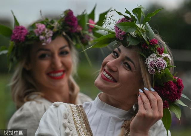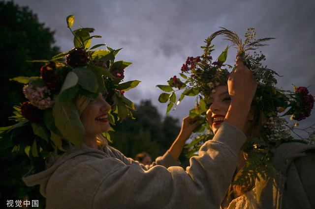 波兰库帕拉之夜迎夏至 少女头戴花环载歌载舞