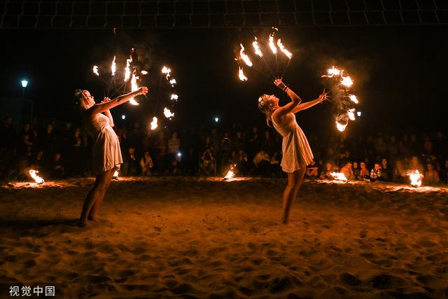 当地时间6月21日,波兰热舒夫市,民众举办活动庆祝夏至。