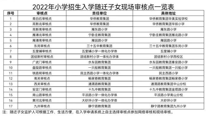③现场审核:各教育集团设立统一审核点,未加入集团的学校设立连片审核点,实行集中审核。监护人持相关证明材料,自主选择审核点参加资料审核,审核时将依据购房时长、社保缴纳时长、居住证签发时长等因素对各类别儿童进行入学类别认定。