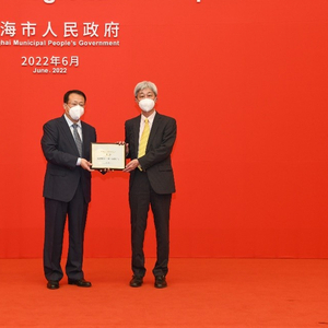 上海市委副书记、市长龚正为东芝电梯(中国)有限公司颁发证书