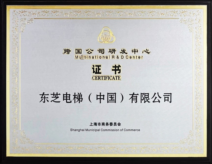东芝电梯(中国)有限公司获得上海市商务委员会颁发“跨国公司研发中心”证书