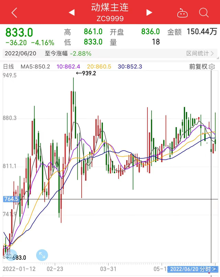 在监管之下,6月中旬以来,煤炭期货市场价格出现一轮调整。6月20日,动力煤、焦煤、焦炭期货价格全线下跌,其中动力煤期货价格跌逾4%。