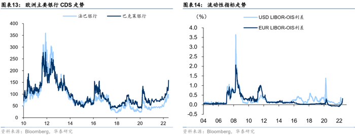 另一方面,银行危机迫使欧洲多国政府为银行注资,进一步加大了政府主权债务压力。风险传导出现恶性循环。主权债务危机和银行危机的爆发,市场恐慌情绪大幅上升,资金流向更加安全的地区,欧元区开始出现流动性危机。银行间市场流动性指标欧元区银行间3月期同业拆借利率与隔夜指数掉期利率利差持续扩大。风险升高迫使银行在市场上抛售资产,银行资本充足率不断下降,业务经营面临困境。市场流动性持续收紧衰竭,导致部分银行在本次危机中被迫破产。