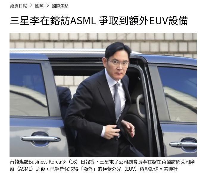 你看出狱没多久,刚整治完内部的李在镕,上周前往欧洲诸国,别的地方没多停留,直接就跑到荷兰去,跟 ASML 的高层与荷兰的总理谈笑风生。