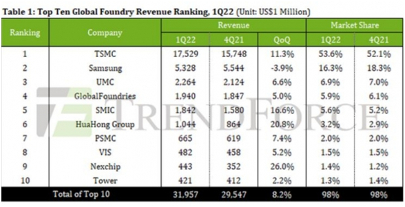 而且作为全球十大半导体公司,在大家都在喊着缺芯缺芯的时候,三星反而成了唯一一个第一季度收入下降的公司。