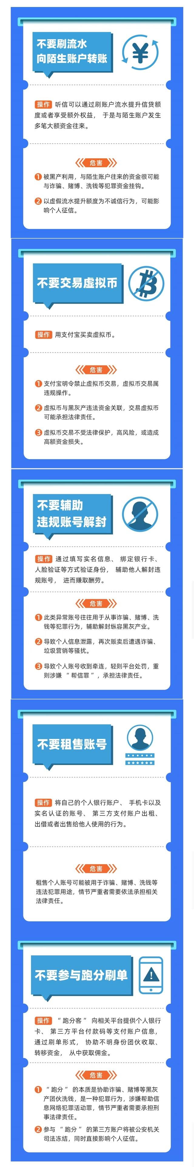 支付宝发出提醒:这些风险操作不仅可能泄露你的个人信息、影响账户安全,导致支付宝账户被限制,甚至可能涉嫌违法,大家平时要千万注意,不要做。
