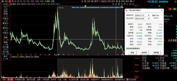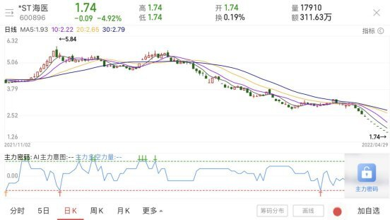 目前*ST海医已停牌,而停牌前出现11连跌停,最新报每股1.74元/股,距离2008年1月15日最高股价25.42元,已跌去超过92%。