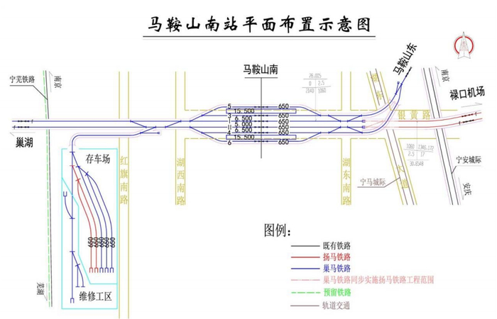 扬马城际铁路(安徽段)项目自苏皖省界进入马鞍山市,主线经过马鞍山市雨山区(含马鞍山经济技术开发区)、博望区和当涂县,拟建设规模正线全长约22.47公里,联络线长11.2公里。