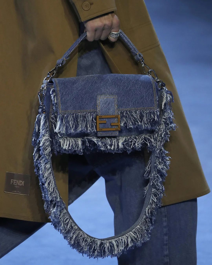 大号水桶包也以全新FF提花面料重新调整,而印有金色Fendi品牌logo的大号手提包的牛仔元素也十分吸睛,包袋两侧牛仔穗的设计让方形包袋看起来更加活泼灵动,不落俗套,也中和了大logo设计略显浮夸的整体感觉。