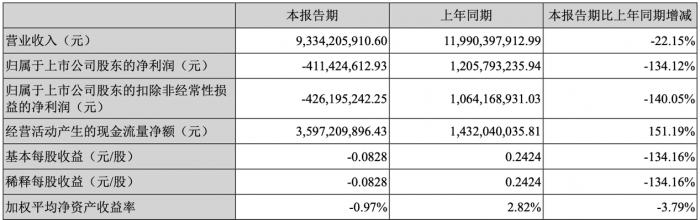 2022年Q1,公司实现营收93.34亿,同比减少22%;净亏损超4亿元,同比下降134%;毛利率仅11.24%。
