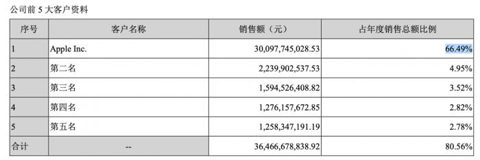 直到2021年,苹果依然是蓝思科技最大的客户,销售额约301亿元,占年营收的66.5%。