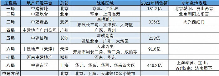 近几年发展突飞猛进的“中建系”—中建东孚在上海布局多年,销售规模也一路追赶,今年推盘项目数量跟保利、招商旗鼓相当,但其品牌和标杆代表作有待与一线房企较量。