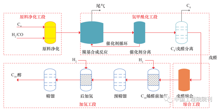 图 5 混合 C4 烯烃氢甲酰化生产 2-PH 的原则工艺流程图