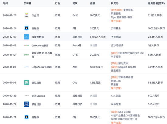 (2020年,在线教育行业巨额融资频现,来源:IT桔子)