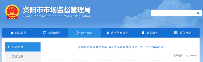 | 6 | / | / | 乐至县冯二姐面制品加工坊 | 资阳 | 湿面 | / | 2022-03-22 | 资阳市食品药品检验检测中心 | |