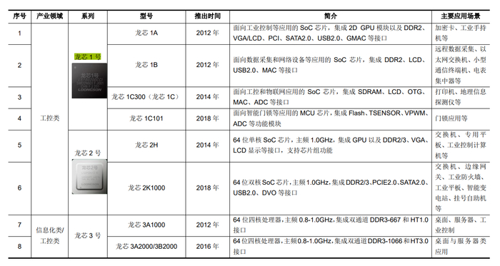 龙芯中科透露,该公司已形成面向嵌入式专门应用的龙芯1号系列处理器、面向工控和终端类应用的龙芯2号系列处理器、以及面向桌面与服务器类应用的龙芯3号系列处理器等主要产品。目前,该公司基于信息系统和工控系统两条主线开展产业生态建设,面向网络安全、办公与业务信息化、工控及物联网等领域,与合作伙伴保持全面市场合作,系列产品在电子政务、能源、交通、金融、电信、教育等行业领域已获广泛应用。