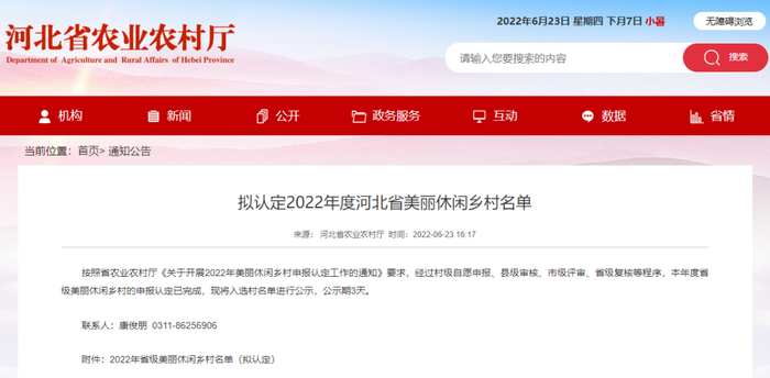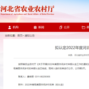 6月23日,河北省农业农村厅网站发布最新消息,对“2022年度河北省美丽休闲乡村名单(拟认定)”进行公示,公示期3天,快来看看有没有你的家乡↓↓↓