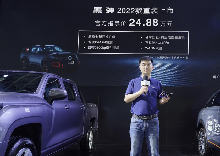 2021年,长城炮正式发布了“炮弹计划”,与运良、顶火、远大谢尔比等优秀的共创伙伴一起打造了中国汽车品牌第一个共创改装平台,这也是国内第一个专业化、定制化、个性化,极致用户体验的平台。黑弹正是此平台孵化的首期产品。