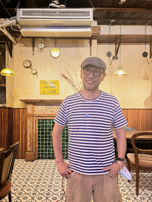老麦也花了一整天待在这家店里,身着经典的蓝色海魂衫,头戴格纹贝雷帽,腔调复古一如这家咖啡馆。常客们都喜欢找老麦聊天,最后的这一天来了十几位顾客,一个接一个,与他从早说到了晚。有的来诉说不舍,有的来关心歇业的原因,有的来与他和这家店合影留念。 6月23日,老麦在静安寺店的留影。