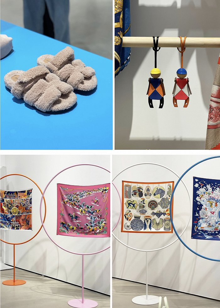 此外,犬类用品,真丝方巾,Twilly丝巾环配饰,毛绒拖鞋,拼图等琳琅满目的生活用品均能在Hermès 2022秋冬配件系列中找到,方巾缤纷多彩,每一款的设计图案都第一无二,艺术家用丰富想象力演绎明媚画面景象。