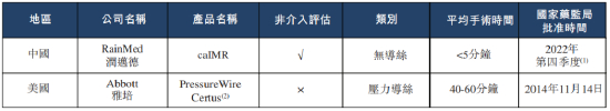 竞争格局方面,中国IMR测量市场尚处于早期发展阶段。目前在中国有一款IMR产品获得国家药监局批准,即雅培压力导丝产品Pressure Wire Certus,润迈德的caIMR系统还处于临床试验阶段。