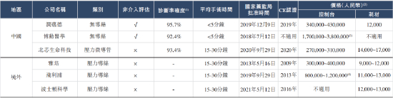 竞争格局方面,共计六家FFR产品公司取得国家药监局的批准,其中润迈德、北芯生命科技、雅培、飞利浦及波士顿科学的产品也都取得CE认证。