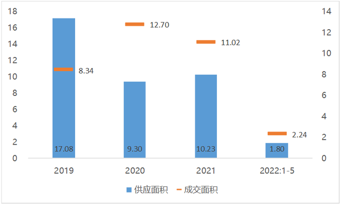 根据中指研究院数据显示,近四年市内六区洋房市场供应来看,19年达到供应顶峰,超过15万平方米,回首2022年1-5月洋房供应量仅为1.8万平方米,按照当前趋势,预计全年洋房供应量将不会高于5万平方米。从供需结构来看,销供比除2019年小于1外,其余年份均大于1,且销大于供的矛盾突出。从市场反映的数据不难看出,市区内洋房供应量急剧缩减,洋房产品极为稀缺,同时需求量持续增长,受到市场的追捧,供需失衡。