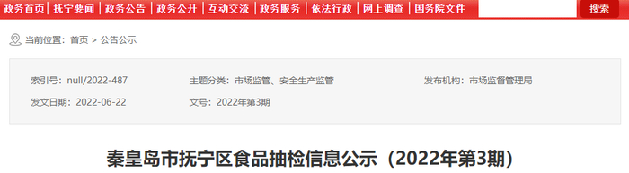 河北省秦皇岛市抚宁区食品抽检信息公示(2022年第3期)