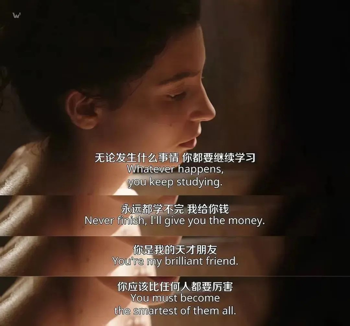 而原本对生活没有确切追求,也同样渴求逃离那不勒斯的莱农,遇到勇猛坚定的莉拉后,被她的果敢浸润了,于是暗下决心要跟上莉拉的步伐。她们成了好姐妹,彼此打气,而各自的性子和长处不同,又免不了较劲。