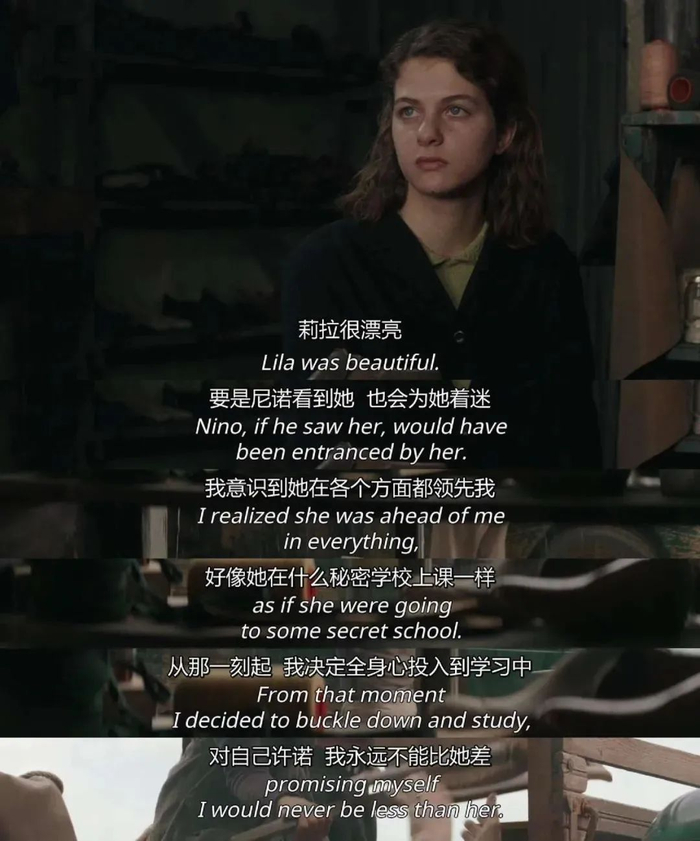 所以她们又靠着相互斗气、打气的劲儿,不停野蛮生长。莉拉和莱农是互为坐标的,她们暗暗较量,却永远相爱着。