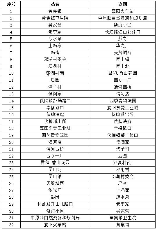 襄阳城区至黄集公交专线