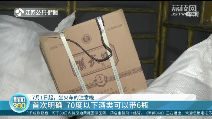 南京站派出所民警季书杨说,标志清晰的白酒,未开封的白酒,酒精浓度在24到70度之间,可以携带3000毫升以下,就是折合6瓶(500毫升装)白酒,大概就是一箱白酒。充电宝和锂电池,外壳要标志清晰,容量在10000毫安时以下,就可以随身携带上车。
